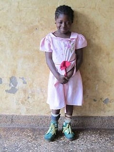 Sandrine’s village name meant worthless. She had so many worms in her feet, knees, legs and hands that she couldn’t walk. She had to be carried everywhere. She lived with her grandparents after the death of her parents. Her grandfather was blind and they struggled daily to survive. Sandrine was in danger of being left by the river for “Mami Water” (to basically die). We rescued her, took her to the hospital where they removed